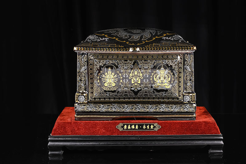 這款【佛光普照】產(chǎn)品,采用的是“錯(cuò)金銀”工藝,它是中國(guó)非物質(zhì)文化遺產(chǎn)名錄的一項(xiàng)美麗的藝術(shù),源自于“春秋戰(zhàn)國(guó)時(shí)期”至今已經(jīng)2000多年,把這種精湛工藝運(yùn)用到我們永生盒,既是傳承,亦是發(fā)揚(yáng)!產(chǎn)品上的圖案源自藏傳佛教的“唐卡”寓意永登西方世界,是生命的輪回不止,代表著中國(guó)傳統(tǒng)佛教的美好寓意。尺寸:300x230x210mm