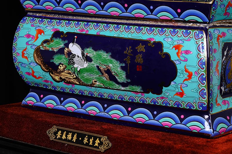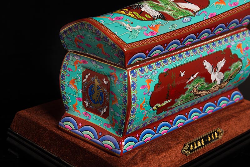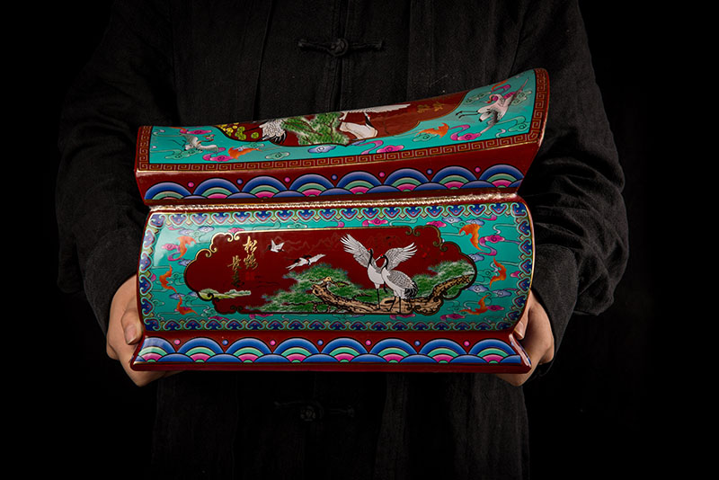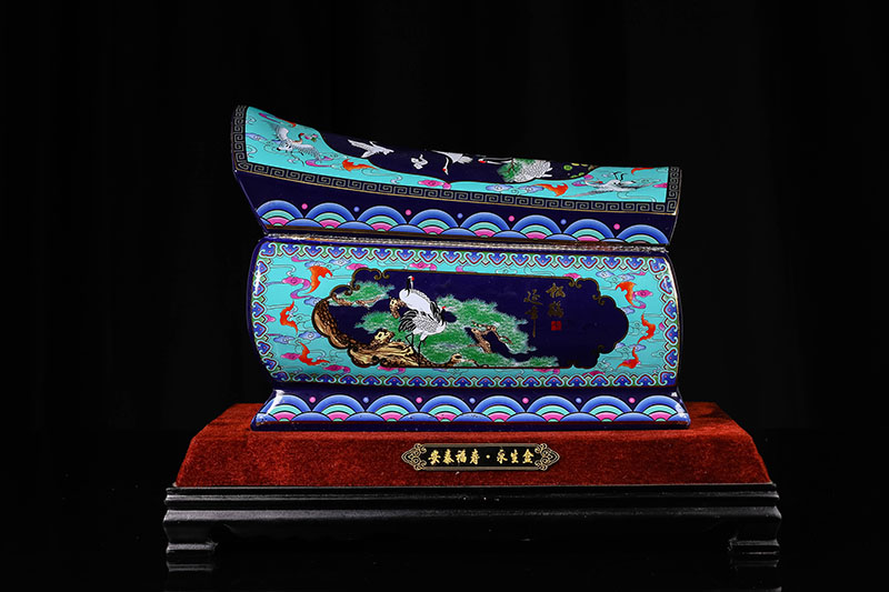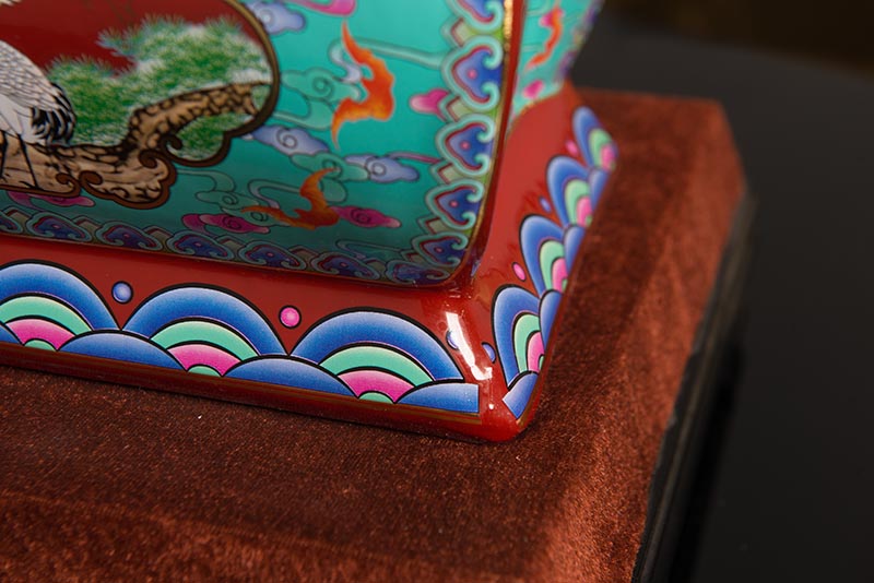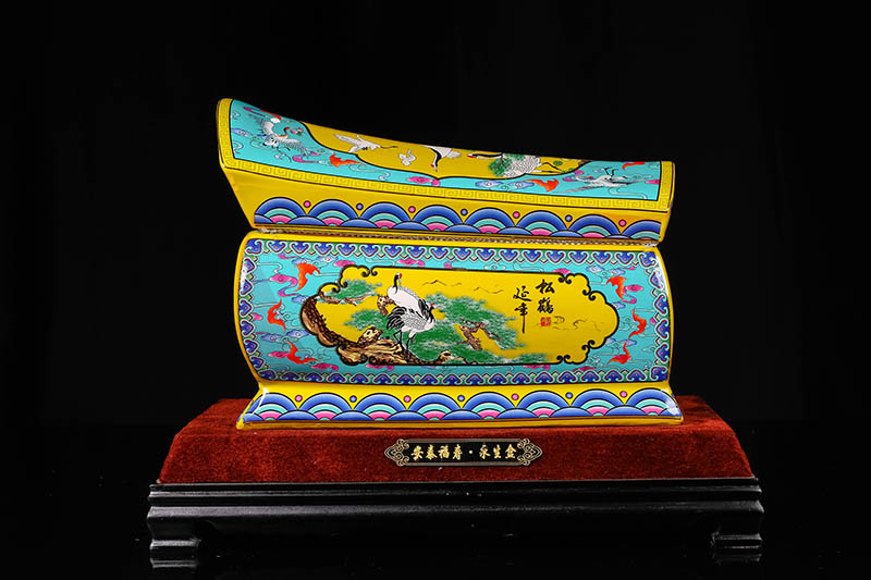這一款產(chǎn)品采用的是景德鎮(zhèn)獨特工藝粉彩工藝,色彩鮮明,呈色自然。原料用的是 “高嶺土”一種特別土礦資源,“高嶺土”又有高齡之意,與我們產(chǎn)品【仙鶴年年】相得益彰,本款產(chǎn)品運用了仙鶴、松樹、松鶴延年則寓延年益壽或為志節(jié)清高之意。 尺寸:345x200x240mm