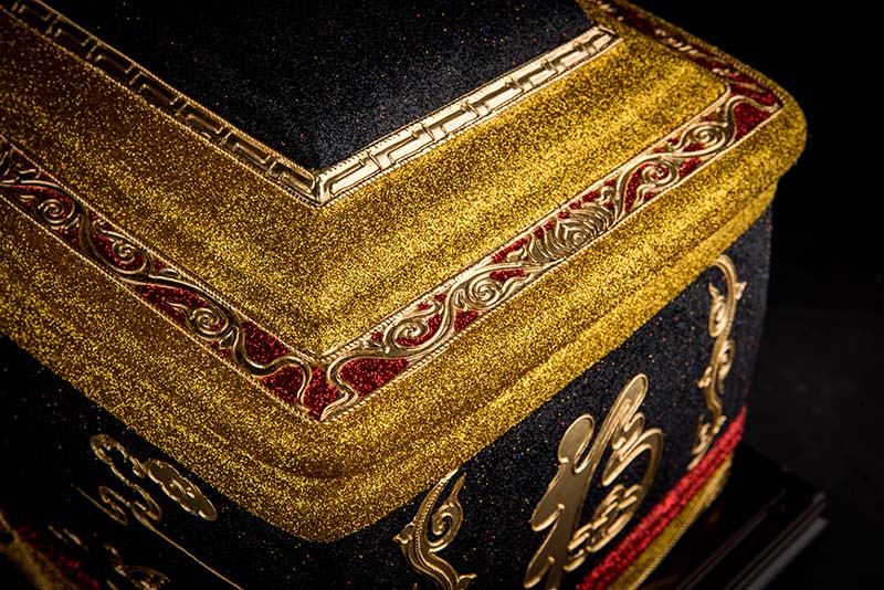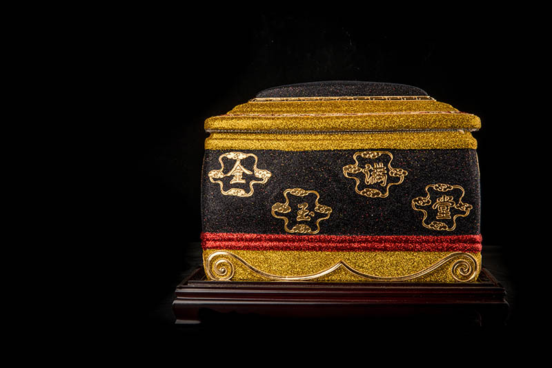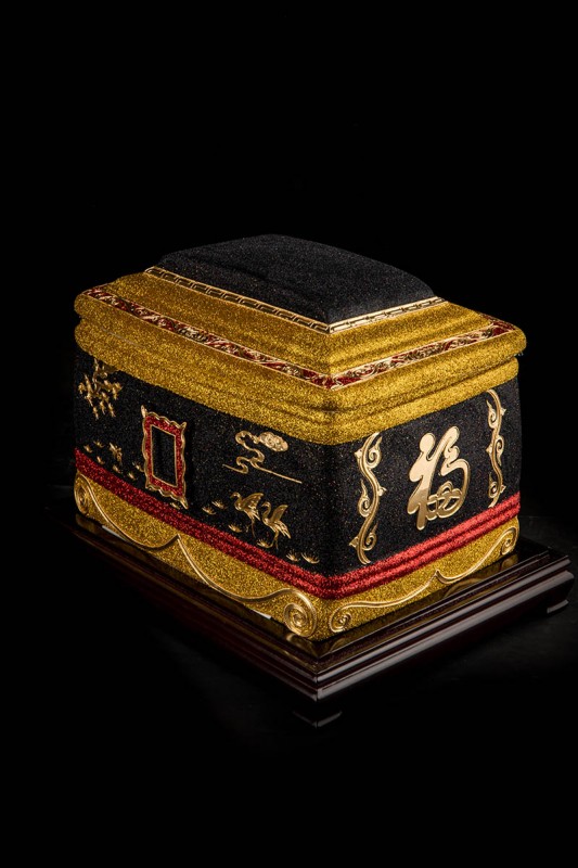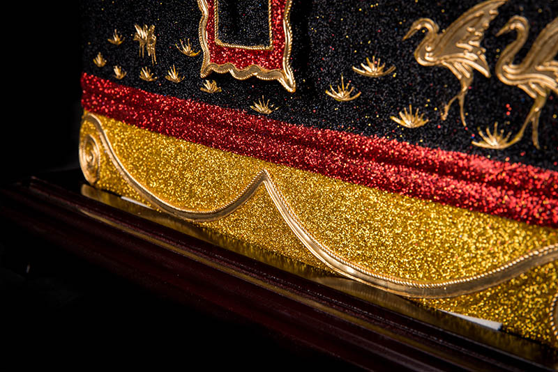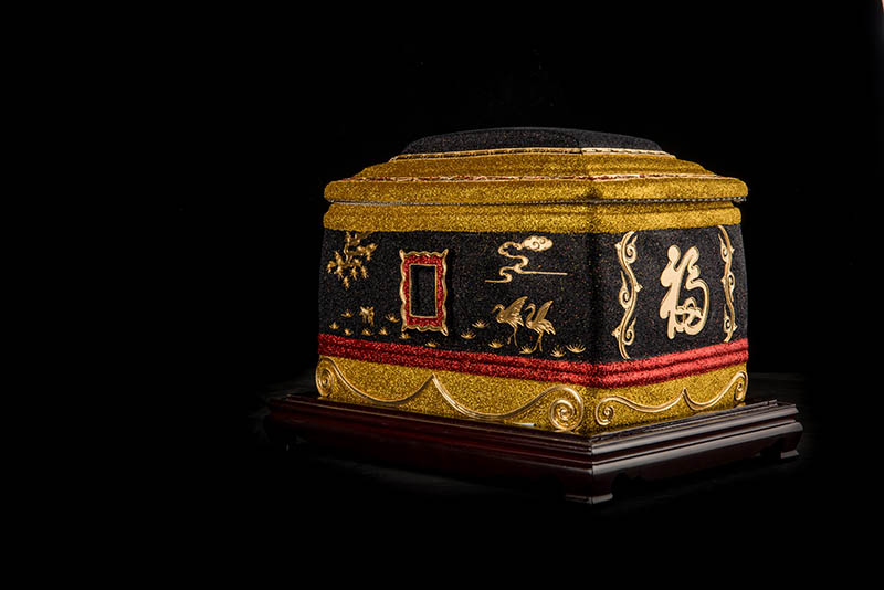 產品特征:24K金線漆線雕工藝,具特色的傳統民間手工藝精品,精細雕刻,線條流暢,顏色搭配簡約大氣,松鶴延年圖案更是寓意福壽延年。